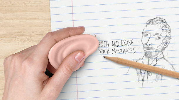 この画像はジョークではなく「ゴッホの耳」という消しゴム(アメリカ製)。ゴッホは自分の耳を切って恋人に送ったと言われている。