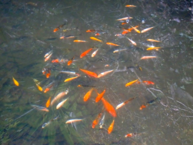 おっちゃんとこの池には立派な錦鯉がいて、時々小さい(いらない)のをうちの池に入れてくれるのだ。これもお祭りでゲットしたらしい。