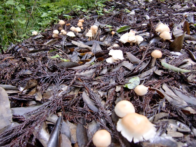 大雨警報が出るほど降ったのに、もう流れ去ったのか、意外に少ない水量。 子供の頃通った小学校の体育館の屋根が見える。 きのこ界では、もう秋なんだなぁ。 |