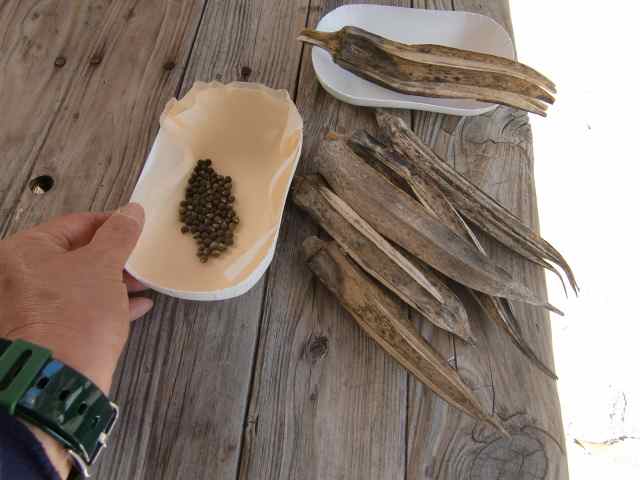 鹿に食べられて3回も蒔いた小豆はまだ青い。でも食べ残しは茶色く、鞘がはじけると豆が落ちるのでとった。 これはオクラの種。 どちらもおばちゃんに種をもらった、右がモロッコ豆で、左は手のない豆と聞いていたが、手=蔓があった!(^ω^) http://moriqzou.blog.shinobi.jp/Date/20140425/1/ |