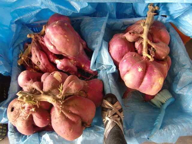 父の家へ来ている。今年は小さいらしいが、それでも3株でこーんなにある、父が作ったサツマイモ!(比較用にアタシの足を入れてみました)