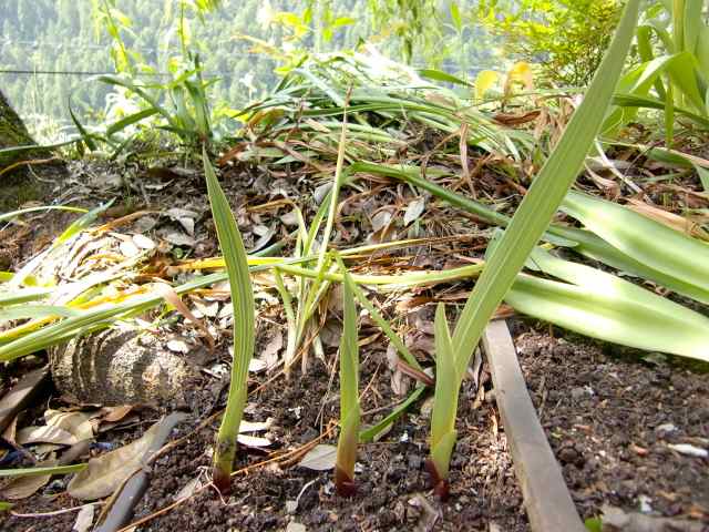 旅の思い出として佐渡島で球根を買い、5月12日に植えたクロッカスの芽が大きくなった。(http://moriqzou.blog.shinobi.jp/Date/20140514/1/)
