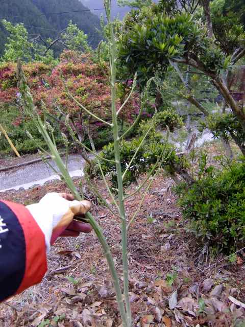 昨夜夕食をご馳走いただいた東隣の家と、下の家でも茶摘みを始めている。うちのはまだ小さい。この辺の製茶工場は5月20日にしまうそうで、間に合うかな?