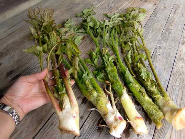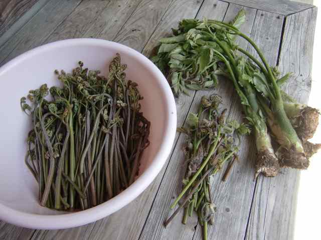 もうこの時期、うちの山や畑の山菜はほぼ終わり。最後にワラビ、ゼンマイ、ウドをとってきた。