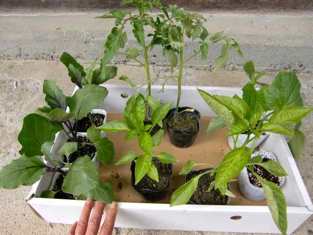 昨日父が買って来てくれた、左から時計周りにナス3本、トマト2本、キュウリ2本、シシトウかピーマンかわからないの2本を植えた。シシトウとピーマンはよく似てるから訊くと、父もどっちを買ったか忘れたって。えーっ!(笑)