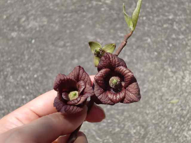 その途中、去年食べたポーポーの花を見つけ(http://moriqzou.blog.shinobi.jp/Date/20130919/1/)、カメラを持ってなかったから枝を折って帰ったんだけど、茶色い花に驚き! PR |