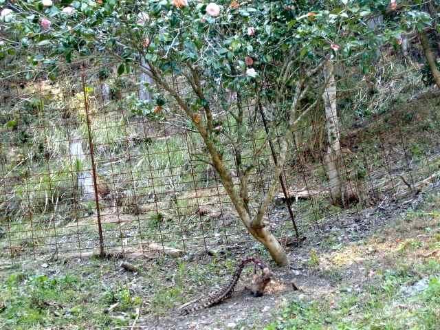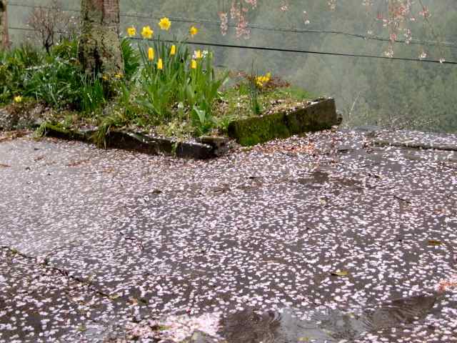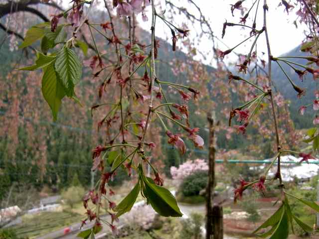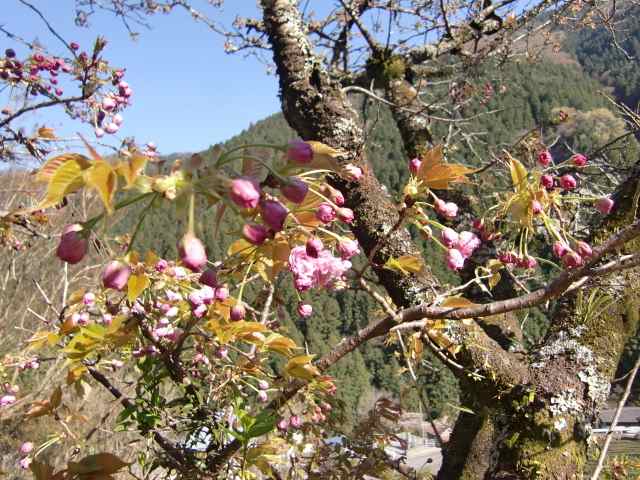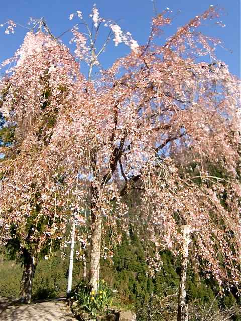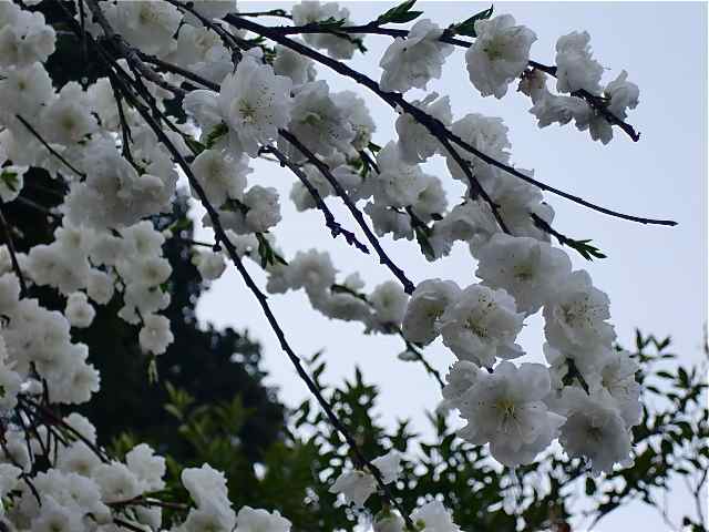「うちの畑で鹿が死んどる」って。内蔵とかは狸かなにかに食べられたらしく、もう頭と背骨くらいしか残ってない! たっ、たぬき? なんと貪食な〜 お目め直しに、隣の家の、これは桃の花かな? |