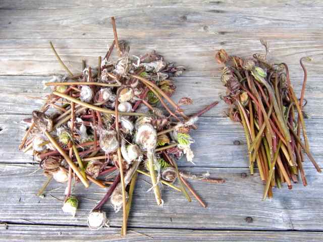 おもちゃ? 歯車? この時期、うちの近所でぜんまいというと、山菜。わらびとりに行き、見をつけたので摘んで帰り、綿帽子をとる。(とったのが右) そして茹でると、こんな色が出た! アク抜き用の灰や重曹を入れてないんだが、大丈夫かな? ともかく干そう! でも手もみすると葉は落ちるから、とるか?(とったのが左) 少し乾燥したら、手もみだよな? |