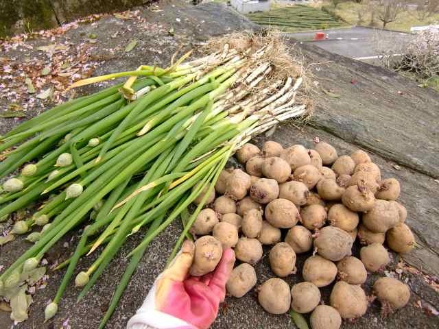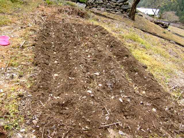 もったいないので葉の柔らかいとこは食べるよ。 おまけにジャガイモもいただいた。去年収穫したもので、去年はどこも小さかったそうだが、まだあまり芽が出てなくて美味しそう。 おばちゃんに「少し植えようかな?」っていうと、もう遅いって。え〜、でもこっそり14個植えることにした(笑)。1個のジャガイモから数カ所芽が出てるから、それを残して切り分け、3畝(うね)植えた。夜になって雨が降り出したし、ちょうどいいかも〜 ^o^ |
