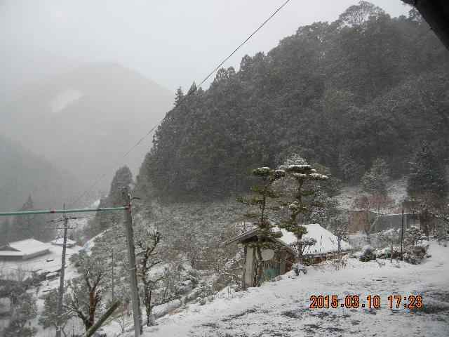 昨日はかなりの雨の中、家に帰ったのだが、今朝はその雨が雪になってた!