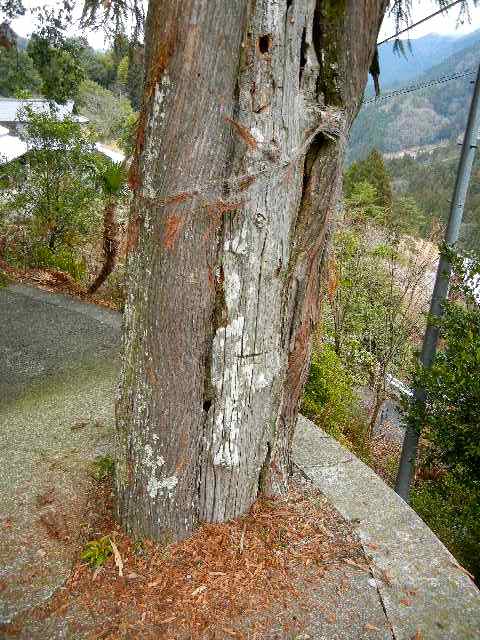 写真でもわかるが、上の方と、わかりづらいが下にも穴が開いてて、啄木鳥(キツツキ)かな? でも上の穴はともかく、こんな下に開けるかな? いやキツツキの生態はよう知らんのやけど…