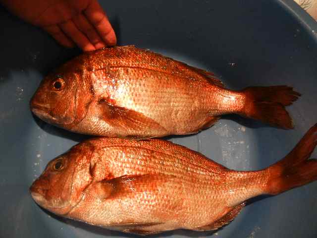 いい型の、しかもエビをたくさん、食べた桜鯛ですね、おじちゃん釣りうまいね
