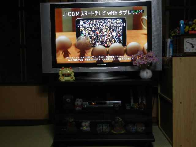 父の部屋で使っていたもので、地デジ対応してないからチューナーも一緒に。で、コードをつなぐが、BSしか映らない。あれこれやってもダメで、コードが足りないと車を探すがないし、寒いし、父は疲れて帰ってしまった。^^;