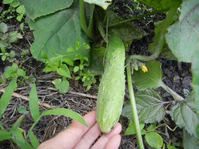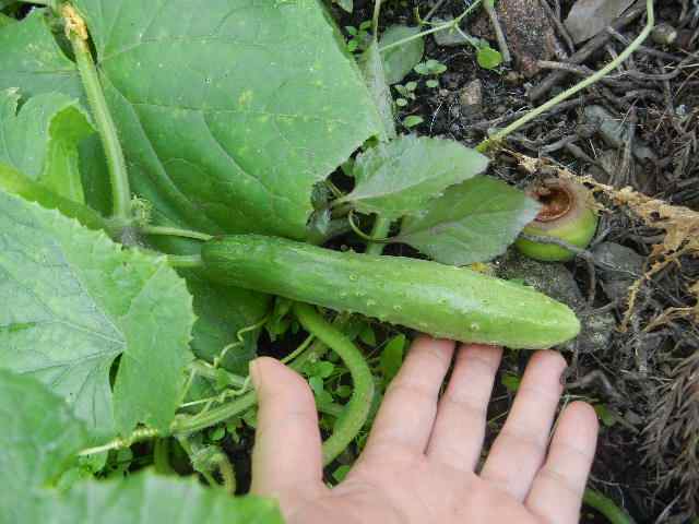 ようやく晴れた! そのかわり、とーっても暑かったけど。キュウリが大きくなり…