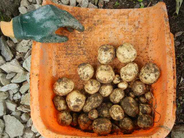 ジャガイモの葉が枯れてきたので掘ってみる。