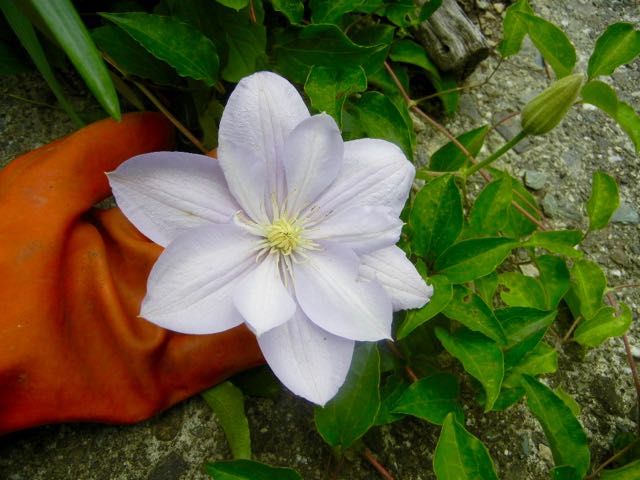 西隣のおっちゃんちに咲いてた花。テッセンかと思ったけど違うようで、クレマチスでもないみたいだし、なんだ?