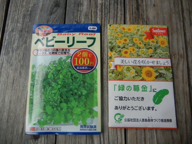 ベビーリーフと、結局ヒマワリは蒔かなかったから4種類。芽、出るかなぁ〜