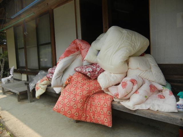今日は押入れの布団を全部出して干し、布団圧縮袋に入れていたら、外で呼ぶ声が。何かと思ったら「あめ〜!」って。私の名前を呼んでいた隣の娘さんも手伝ってくれて、おおわらわで縁側に入れた布団。一瞬だったし大して降らなかったのに、少し濡れたから明日また干さないといけない〜 (;_;)