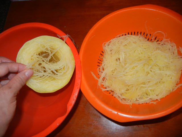 2つに切って中の種をとり… 茹でると果肉がこーんなになってる。中国語ではフカヒレ(魚翅)に似てることから魚翅瓜っていうらしい。酢の物にしたりサラダで食べるのだが、シャリシャリした食感が楽しい。^^ |