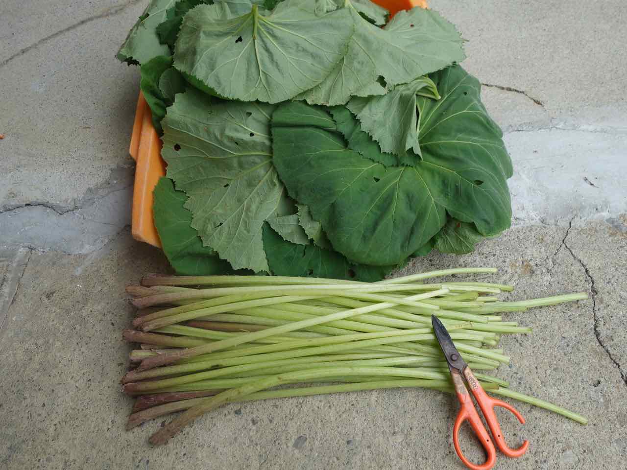 隣のおっちゃんに破竹(はちく)をもらったので、蕗(ふき)をとって来て、先日冷凍した山椒を入れて煮物を作ることにした。