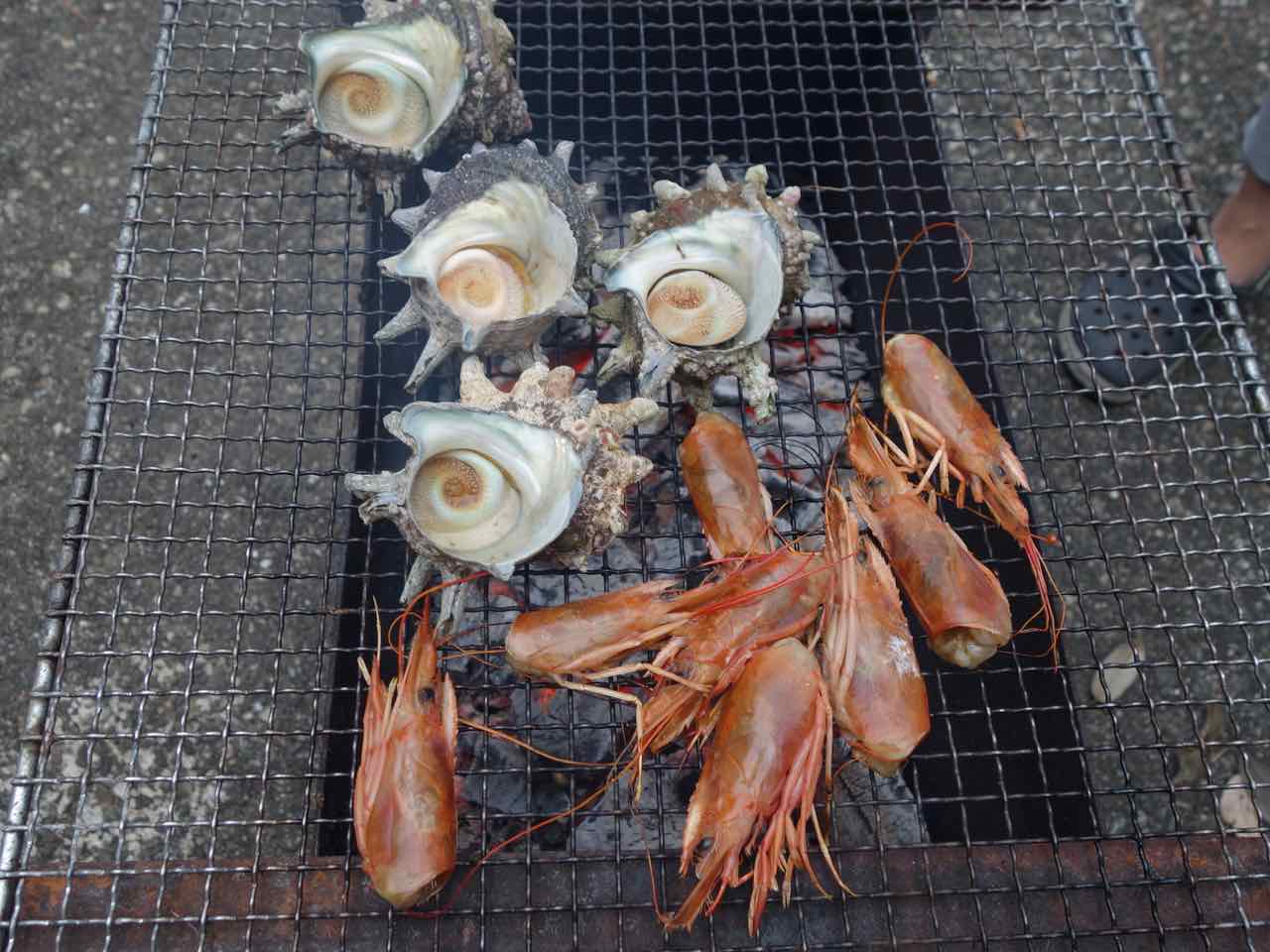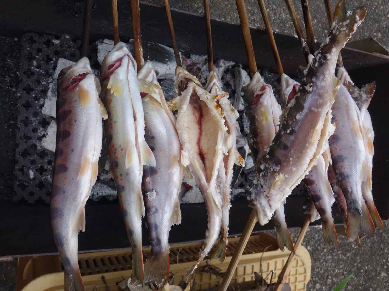 午後、母の実家の墓参りに行き、川遊び。帰りに養魚場でアメゴ(サツキマスの一種)を買って、夜は恒例のバーベキュー! まずアメゴの塩焼きをして、サザエと前夜刺身で食べたアルゼンチン産のエビの頭。そして肉。食後に花火をして呑んだくれたのでした。^^;