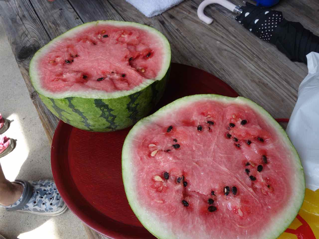 いつもありがとう 来年もまた川行こうね❗❗ そして来年はスイカの切り方もっと研究してくー(´・ω・ゞ)