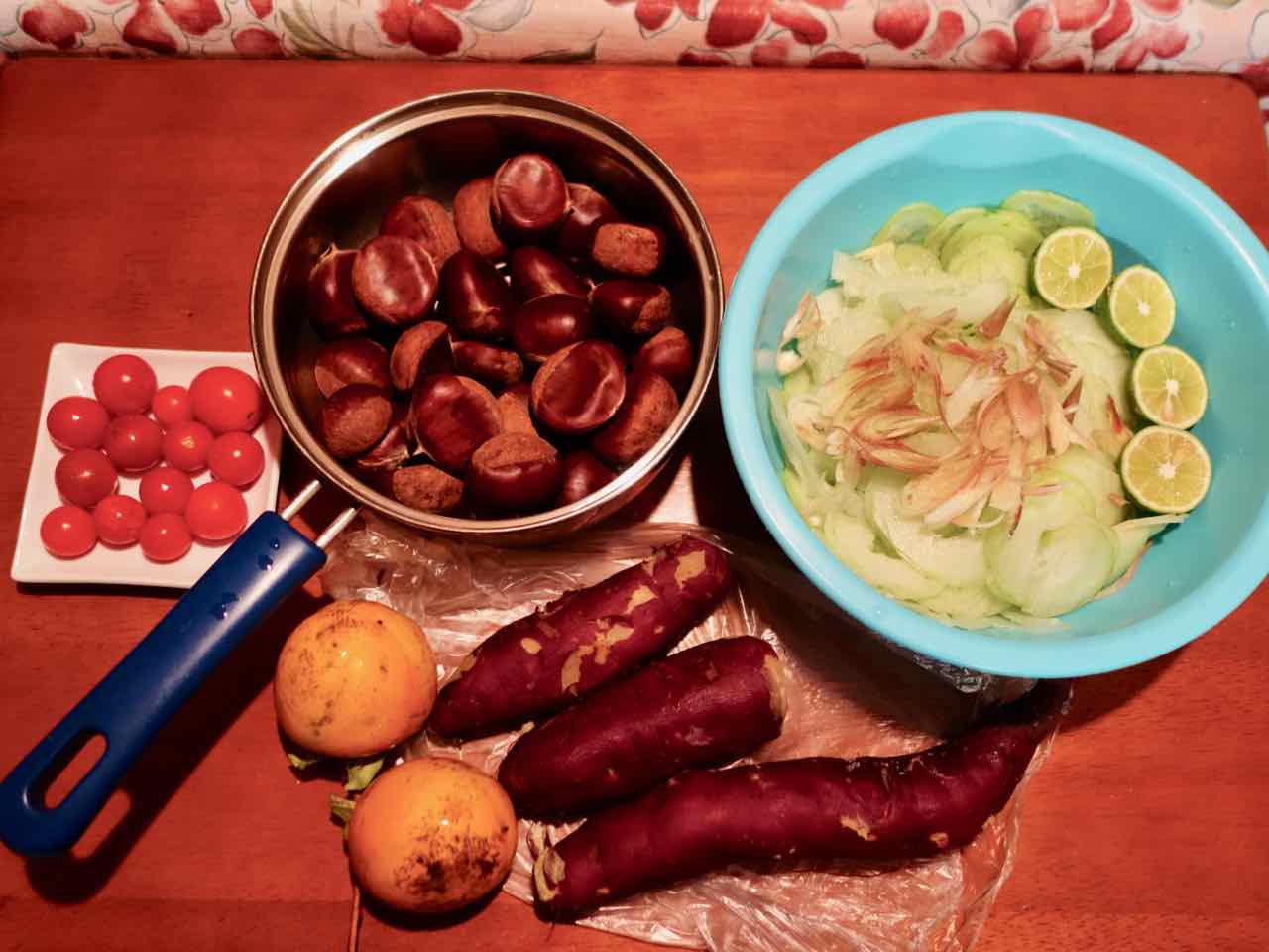 今日も20個くらいとって散歩仲間のおっちゃんに持って行ってあげたんだけど、明日から雨だっていうから、散歩から帰ってとり残しを収穫。1人じゃ食べきれないから冷凍してみた。どうなるかな? きれいなミョウガも1つ発見。熟れてると思ってとった柿は渋かった。(;_;)