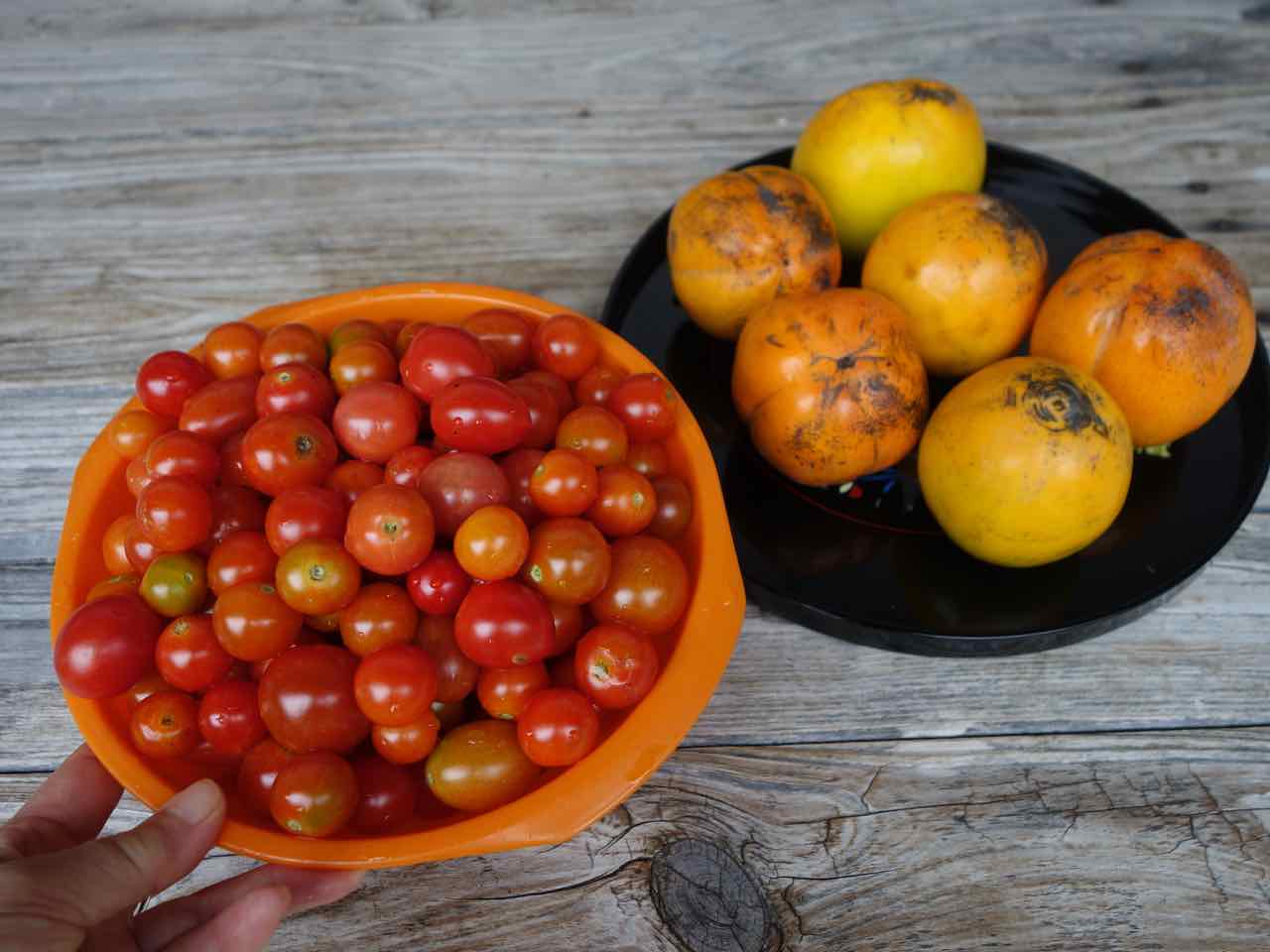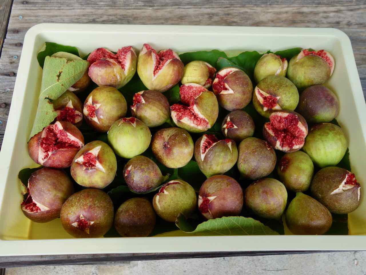 昨日は散歩帰りに雨が上がったと思ってイチジクを収穫していたら降り出して、写真は撮らないままご近所にもらってもらったんだけど、今日もまたこんなに! ご近所には2回目、3回目と配り終え、どこへ持って行こうかと悩んでいたら、ちょうど父が草刈りに来ていたから持って帰ってもらった。今年は台風で大きな枝が折れたというのに、激しく熟れる! ^^;