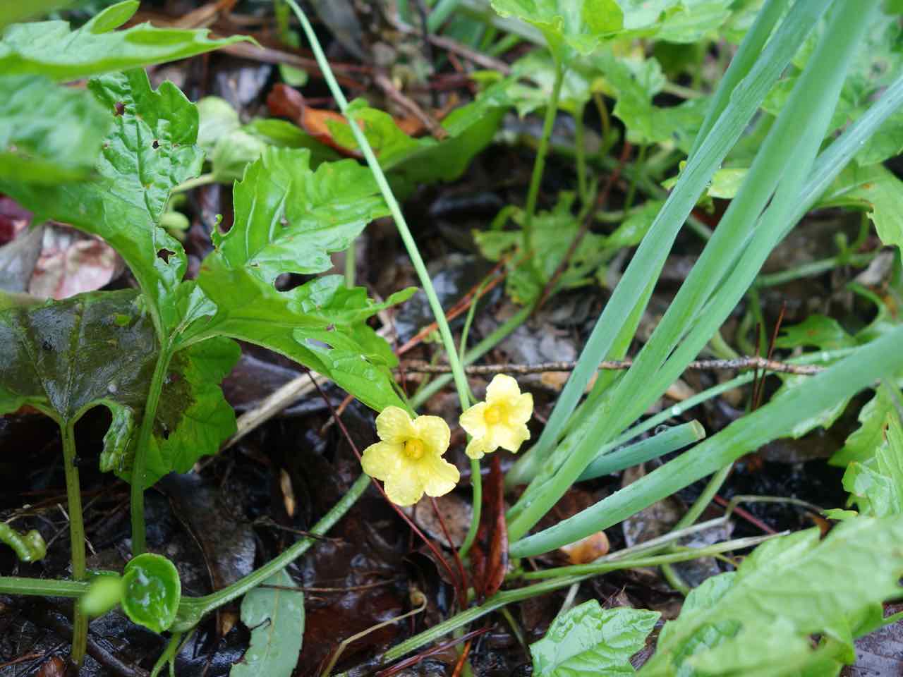 ところが、庭の隅の花壇でゴーヤの花を発見! 昨日コタツを出したほど、もう十分寒いのに、しかもこんな悪天候の日に、咲くかい!? 明日から剣山で、ブログは連休明けまでお休みでーす。 |