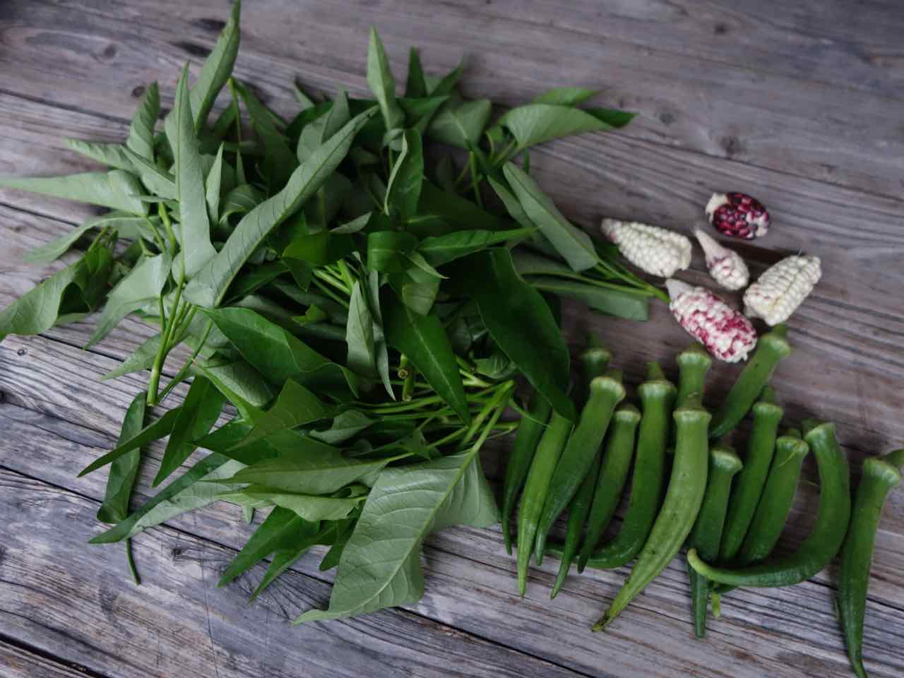 散歩仲間のおっちゃんの奥さんが空芯菜(くうしんさい)を作ってて、いただいた。香港では通菜(とんちょい)っていうんだけどね。茎の中が空洞の野菜。オクラは西隣りのおばちゃんにいただいた。モチキビは昨日とったうちので、小さすぎて実が入ってないんじゃないかと思ったけど、皮をむいたら大丈夫だった。