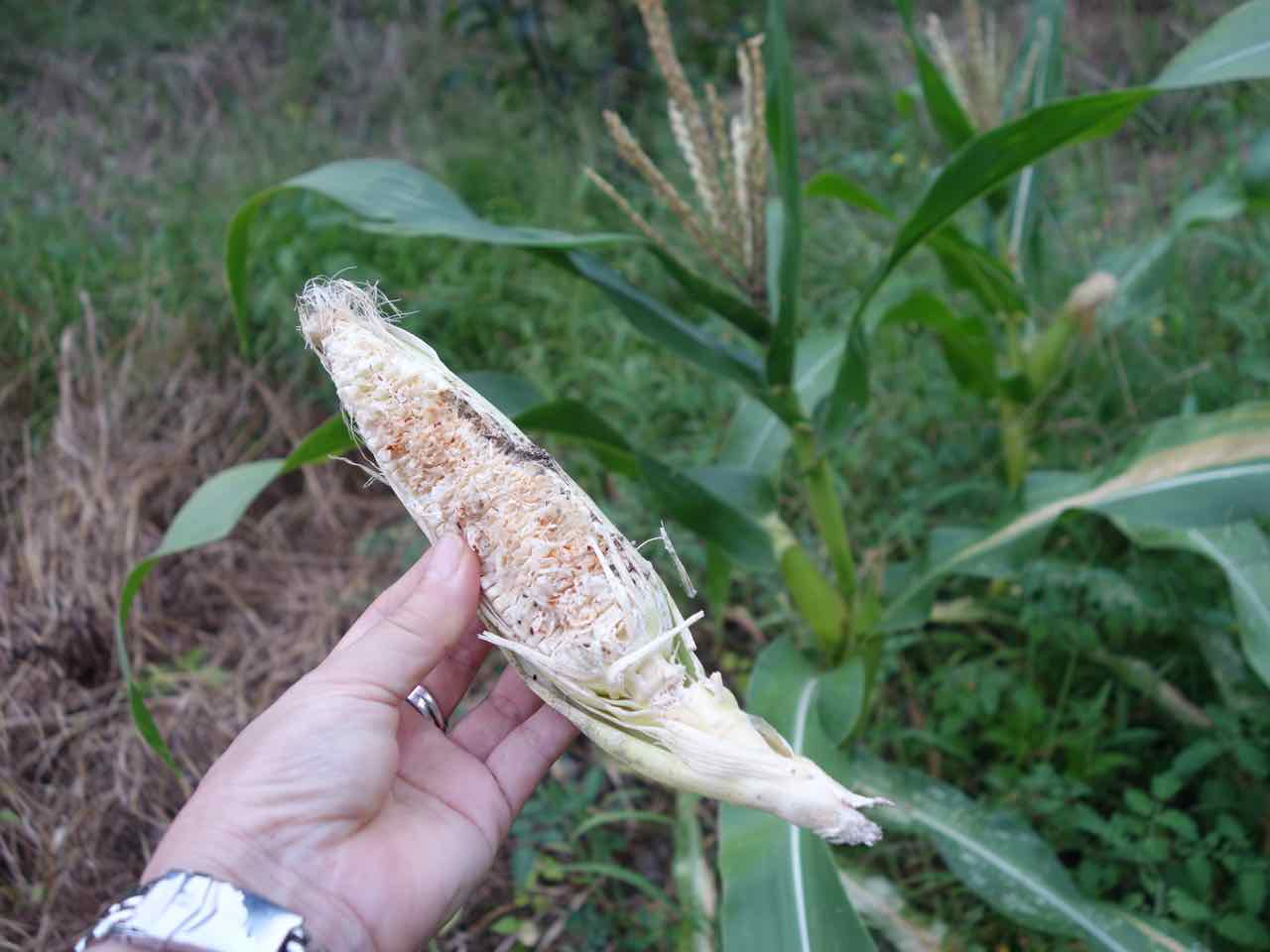 モチキビの実も。犯人はウサギ? タヌキ? 見つけたら、ただではおかずぞよ〜!(実際は何もできないけど ^^;) |