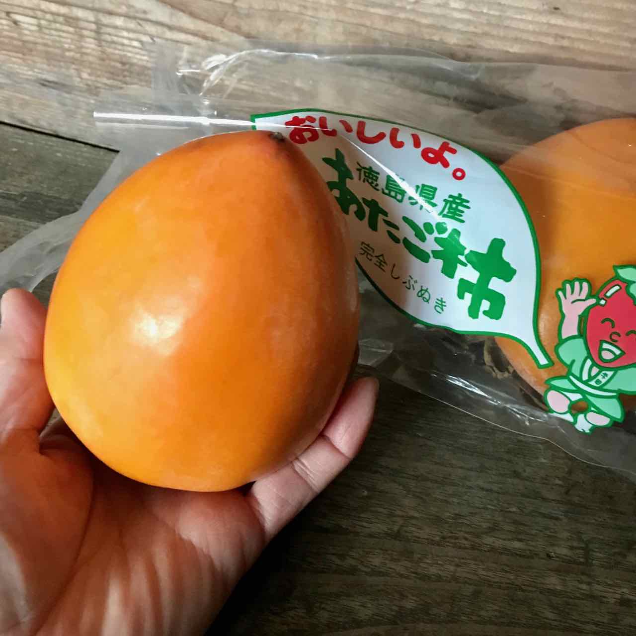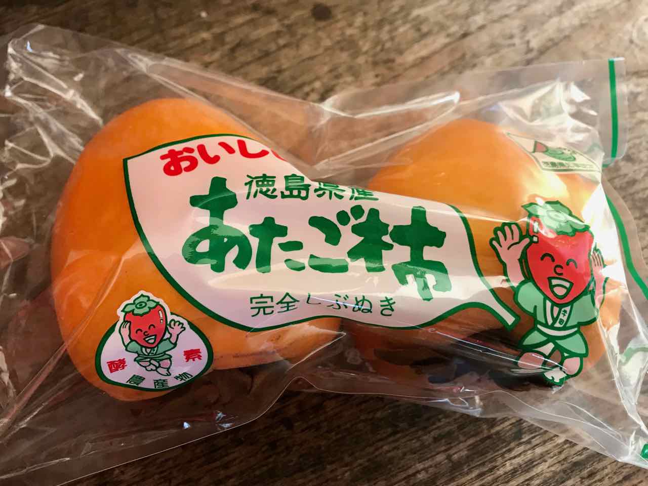 愛宕(あたご)柿をいただいた。原産は愛媛らしいが、徳島産。元は渋柿なのだが、渋を抜いて甘くした柿である。