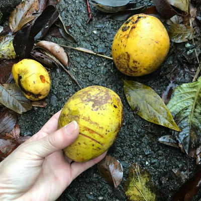 近所を歩いていて、道路の側溝に落ちた黄色い実を発見。花梨(かりん)だ〜