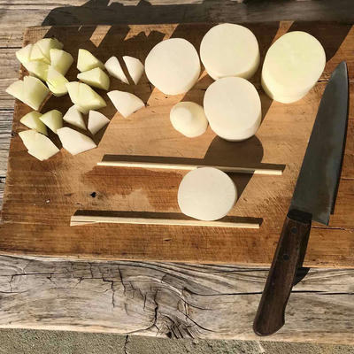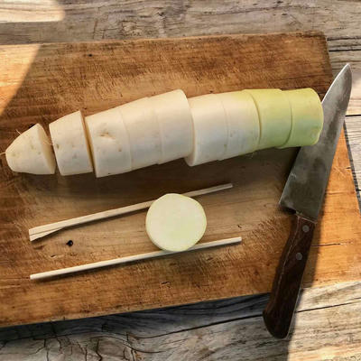年末に調味料の分量を間違えて失敗した大根の漬物。水に漬けて塩抜きしようとしたけどダメで、しょっぱくて結局捨てたんだけど、漬けていた液はもったいないから砂糖を足して膾(なます)を作ったら、意外に美味しい〜 でもそれだけでは沢山いただいた大根を食べきれないから、昨日また漬物に挑戦!