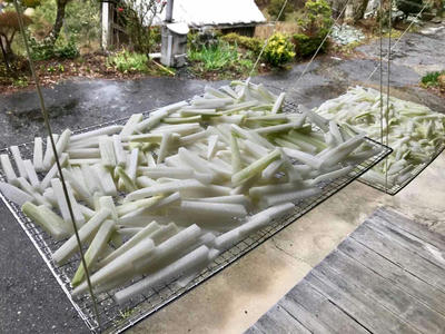 5本全部切って網に乗せたが、雨は上がらず、乾くかな?