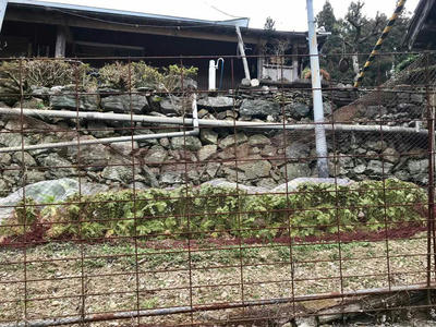 散歩仲間のMちゃんに、東隣のおばちゃんの大根に蕾がつき始め、大量消費するため5本いただいて切り干し大根を作ったと話すと、畑に植わったまま葉を切り落とすと長持ちすると言う。へぇ冷蔵庫を使わなくても、そういう保存法があるんだ。というわけで、写真は害獣除けの金網の中の網を被せた大根。