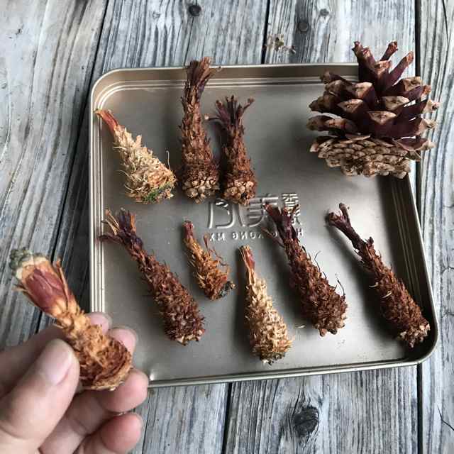 ところで、昨日もう実った栗の写真を載せたが、今日はリス(多分)が齧った松ぼっくりである。これも例年もっと遅い時期に目にしていたと思うんだけど、エビフライみたいになった松ぼっくり。