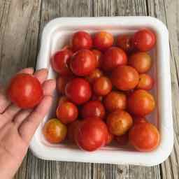 ナスは写真を撮る前に味噌汁に入れちゃったので、トマトのみ。ミニトマトはあまり好きじゃないが、食べるか〜