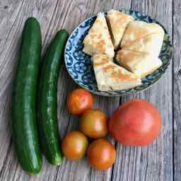 うちの無駄に広い畑はおばちゃんちの裏にもあって、私がヒュッテに行っている間、そこに生えていた薬草(雑草だと思っていた)をもらったと報告がてらお土産を持って来てくれた。キュウリと、昨日写真を載せたうちのミニトマトのひと回り大きいのと3倍くらい大きいの。私が食べやすいだろうっておばちゃんが作ったパンケーキみたいなの。毎度、本当に有り難うございます!