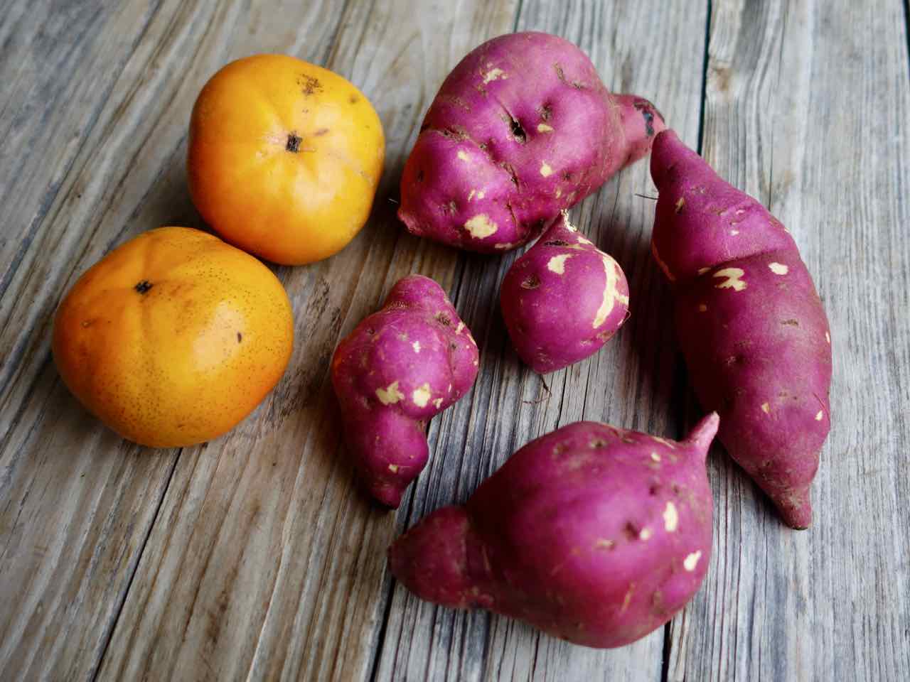 今日はおばちゃんに柿とさつま芋をもらった。キュウリの酢の物もカボチャもまだ食べてないのに、どうしよう〜 (^_^;)