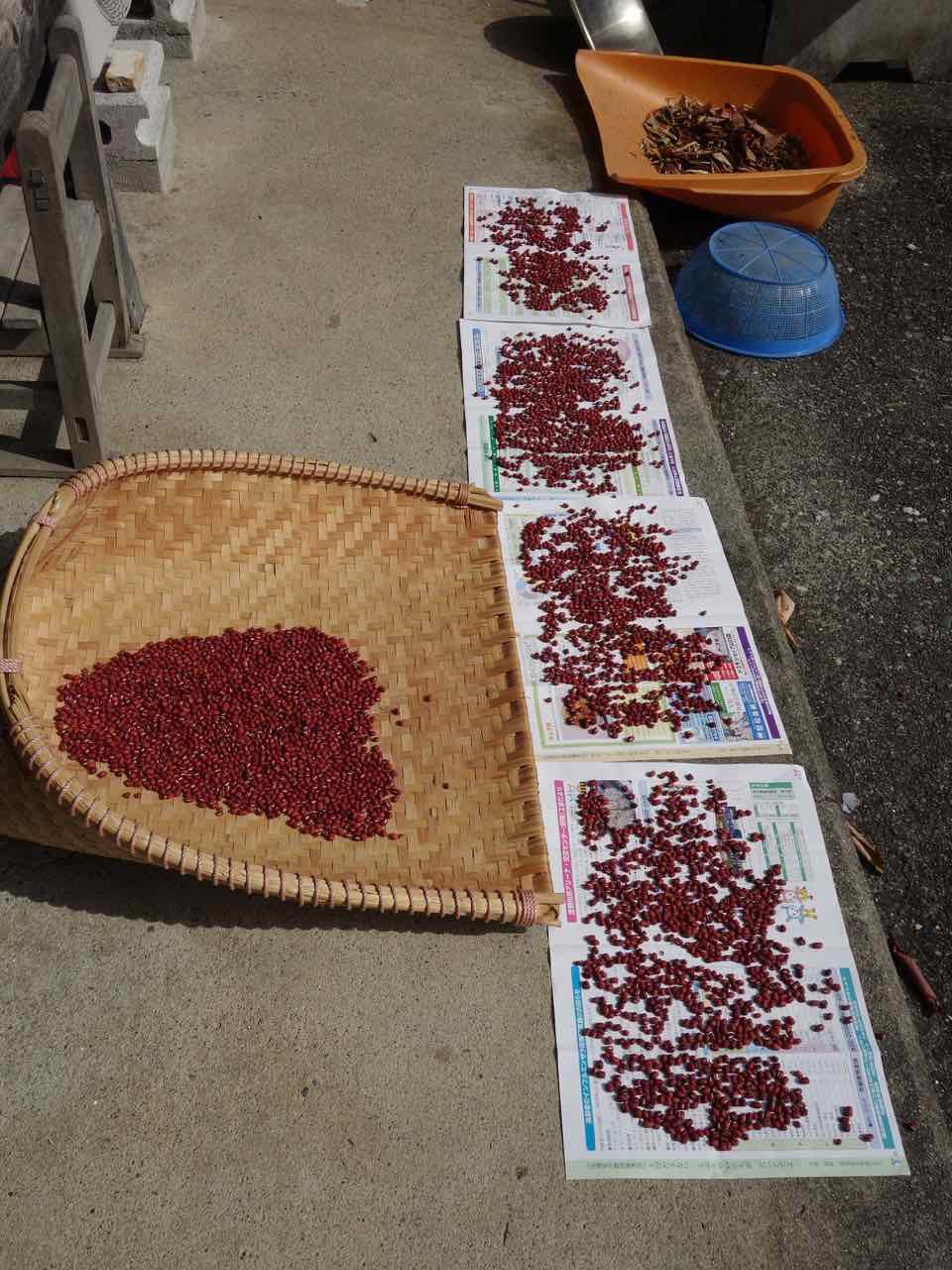 たくさん収穫できたからと東隣のおばちゃんには小豆ももらってて、でも実は自分で出すようにって殻付き。(^^)