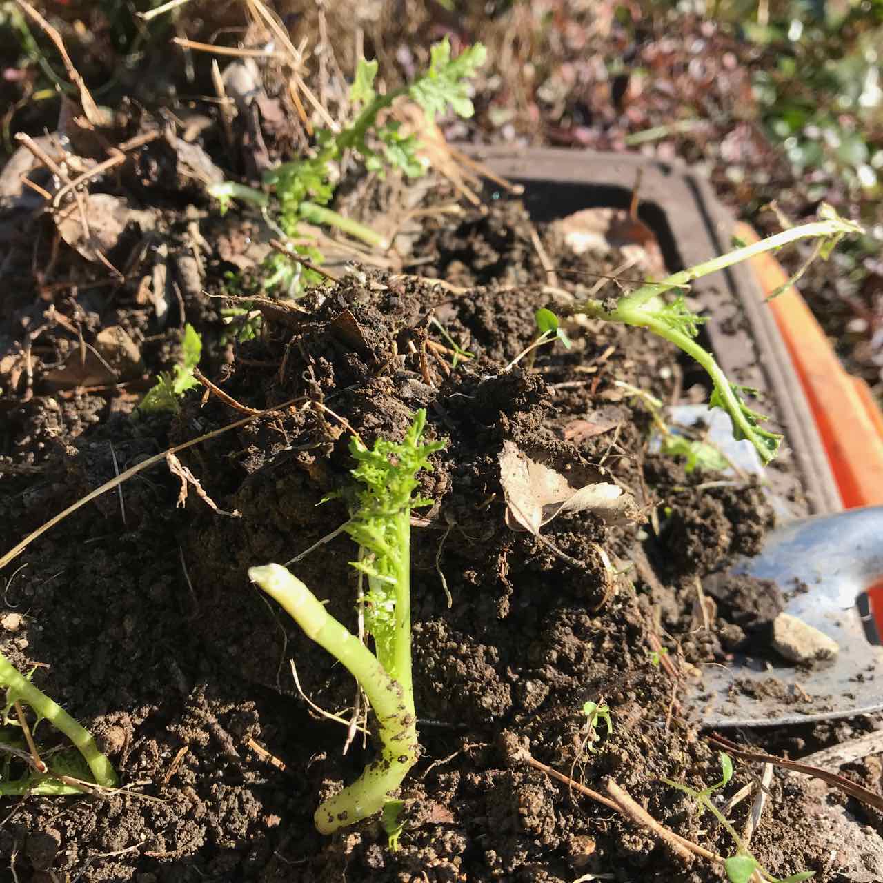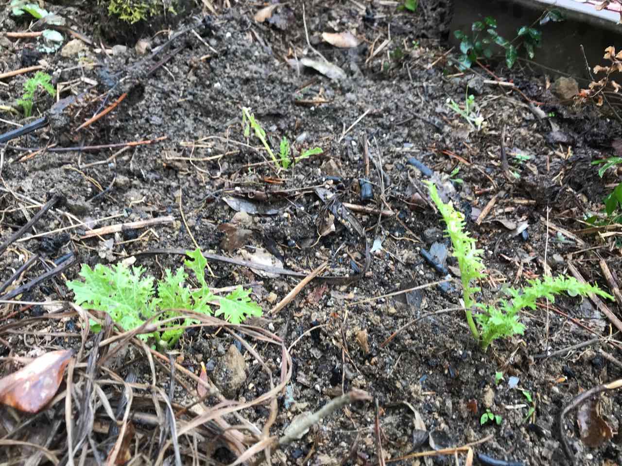http://moriqzou.blog.shinobi.jp/Date/20191022/1/ http://moriqzou.blog.shinobi.jp/Date/20191024/1/ http://moriqzou.blog.shinobi.jp/Date/20191113/1/ 左の4本植えた鉢がそれで、右のは1本なのに成長が遅い。(手前はネギの鉢) 昨日耕した畑に植えようかと思ったが、耕す時、網を張っているのに兎か鹿の糞が落ちているのを見つけたんだよね。そやつに食べられたら腹が立つし、虫がついても早く気づけるよう、また鉢植えにしようと、土と放っておいた植木鉢を拾って来て… 4本植え替えたところで雨! 成長が遅い1本は、晴れたらどうにかしよう。 |