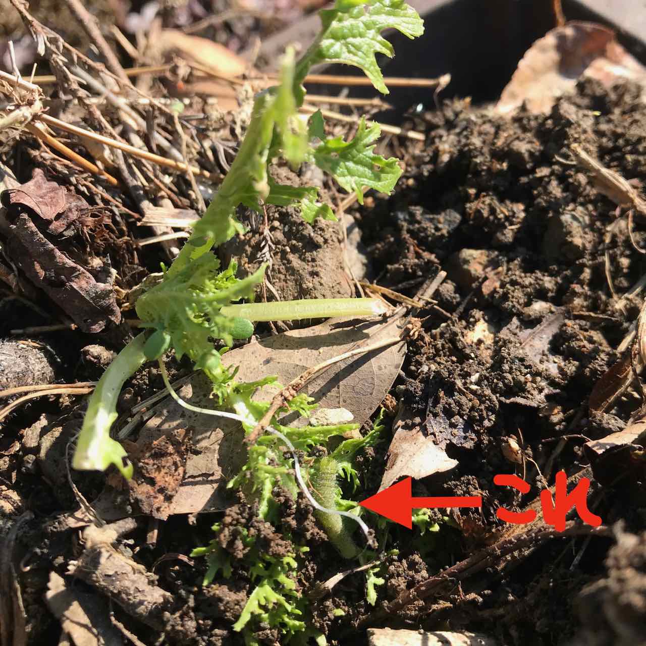 http://moriqzou.blog.shinobi.jp/Date/20190308/1/ 花が咲いた後、種をとろうと思いつつそのにそのままにしていたのが秋に芽を出し、ラッキーと、変なところに生えていたから植え換えていたのを、久しぶりに見に行ったら、葉が食べられてる〜! よーく見ると、いた、青虫! 慌てて庭の隅に植え換えた! ここならまた虫が出ても見つけやすい。 |