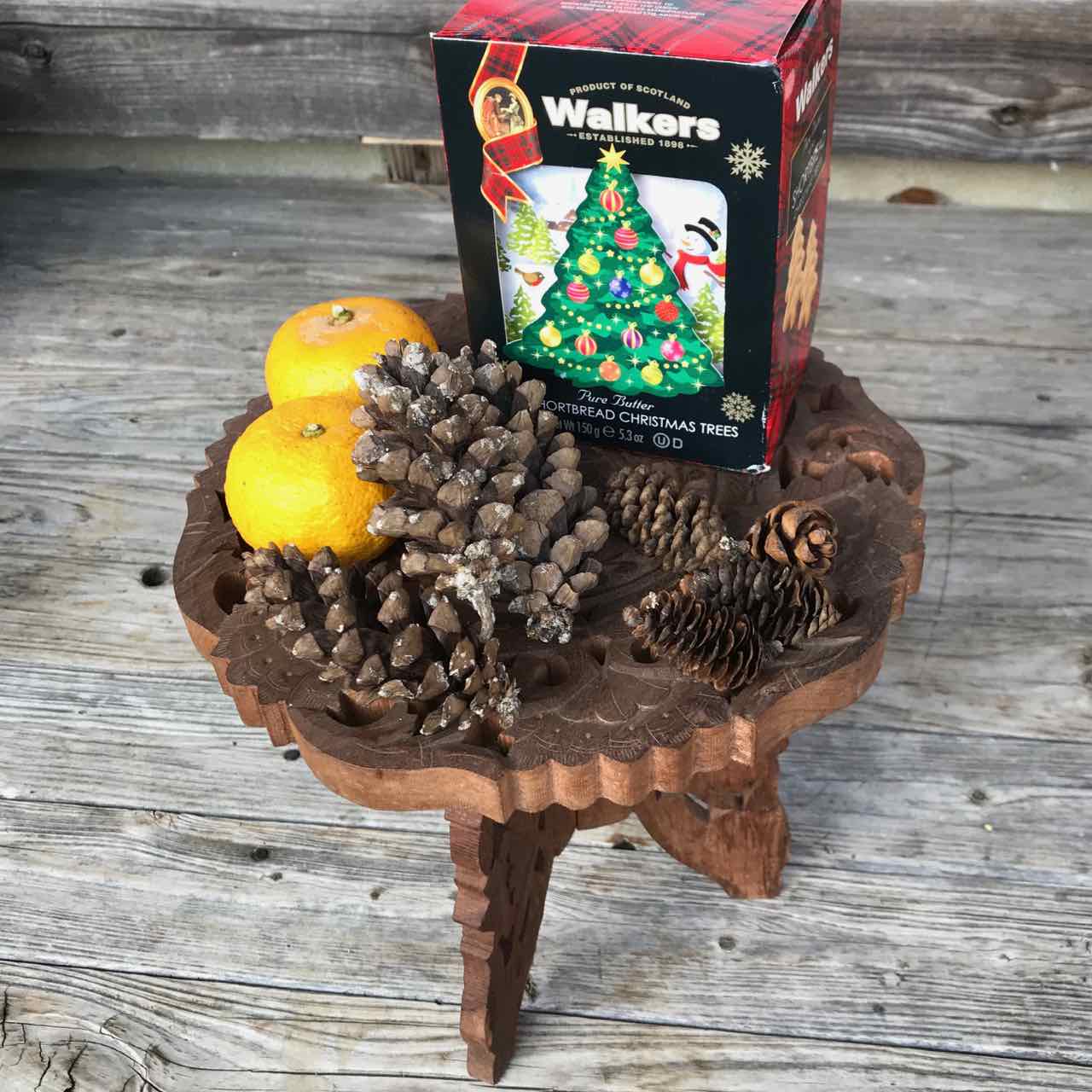 ここ徳島の山奥は、クリスマス気分ゼロ!(笑) 暖かいので師走の雰囲気もなく、柚と松ぼっくりと去年香港で買ったクッキーの箱を飾ってみた。大きい松ぼっくりはカナダで、小さいのは剣山で拾った。