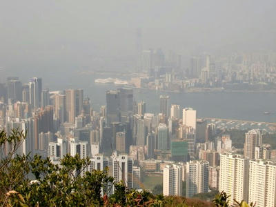 ヴィクトリアハーバーの向こうの九龍、今日は少し靄っていた。