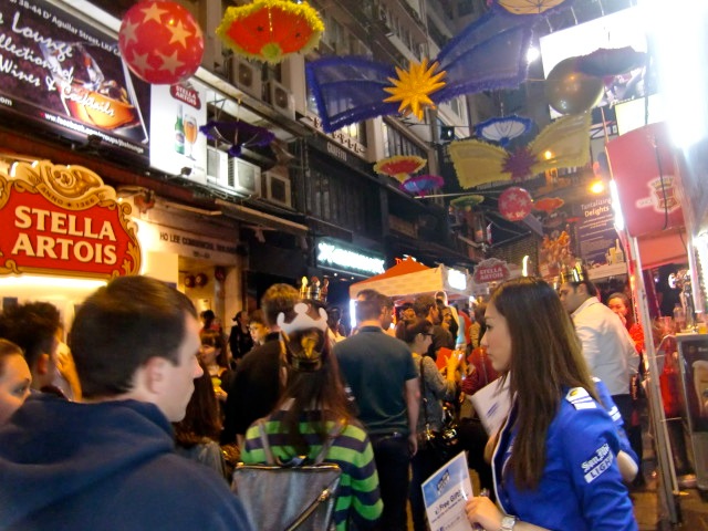 その後10人で蘭桂坊(ランカイフォン)という、オシャレなバーやレストランがたくさんある地区へ。ビール祭りみたいなのをやっていて、若者が多くてオジさん、オバさんは場違いな感じ。(笑)