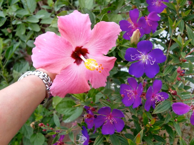 ピンクの花の方はちょっと葉が違うけど、亜種かな? 種は煎ると食べられるそうで、今度こっそり少しもらってくる。(笑)