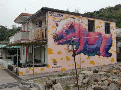 今日のガイドはラマ島。変な壁画があった。