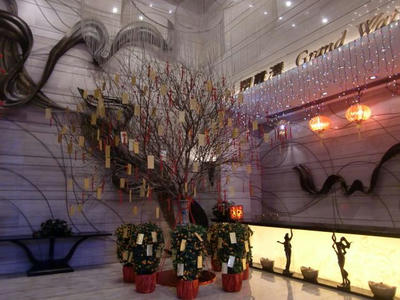 日本ではもうほとんど使ってないが、香港では今でも旧暦の行事が多い。その最たるものが元旦。1月1日は普通の祝日で、お正月は旧暦で祝う。そして今日が大晦日、明日が元旦〜 住んでいるマンションも旧正月の飾りになっている。