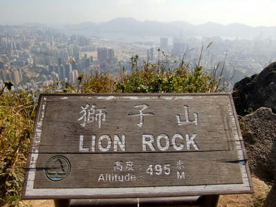 今日はライオンロック=獅子山(Lion Rock, 495m)へ登った。今日も深圳の工場がお休みだから?見晴らし抜群!